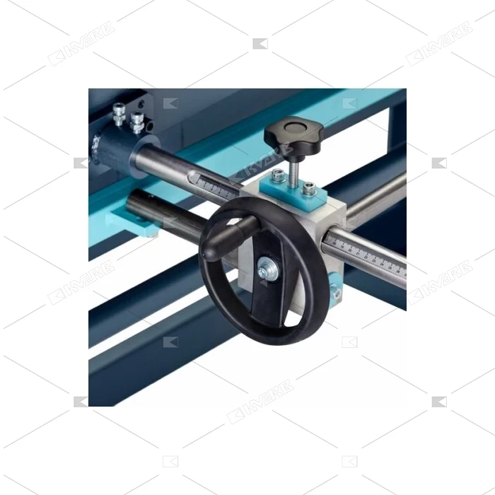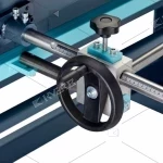 Регулювання заднього упору за допомогою ручного маховика.